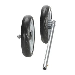 Features and Benefits- Non-swivel 9″ front wheels with inner legs