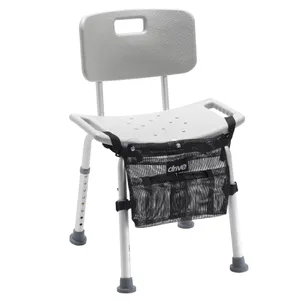 This universal bathing pouch from Drive Medical attaches anywhere: under a bath bench, under a transfer bench or as an attachment to the wall. Large storage pockets provide space and convenient access to hold many personal items needed during bathing. The vinyl mesh material is breathable and allows water to drain. The 10″ x 13″ x 1″ pouch attaches without tools and is machine washable.